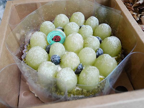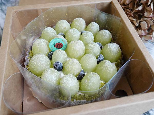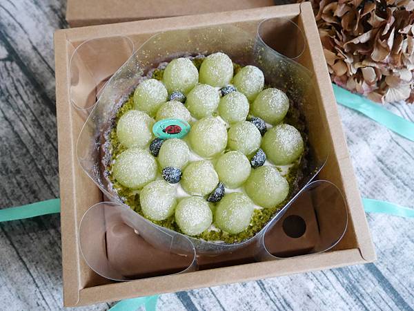 一打開來,就看到被小心翼翼保護著的綠葡萄乳酪塔,