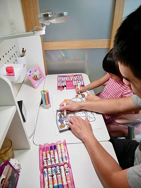 和爸爸一起在書桌上畫畫,也太開心,還能享受天倫之樂啊~~~