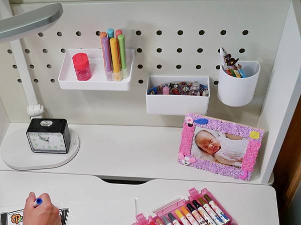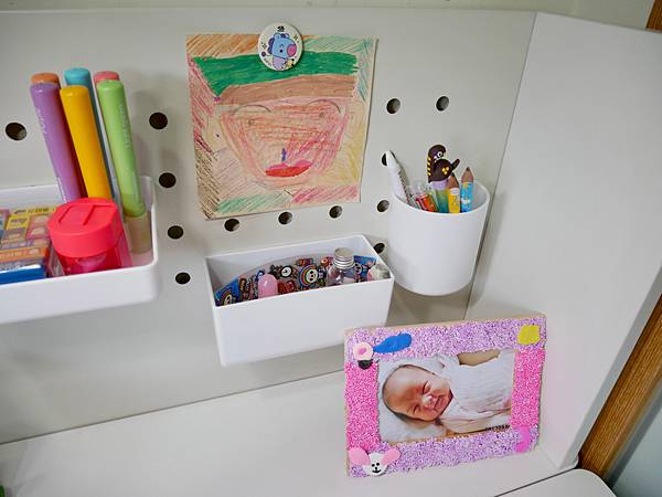 右側的創意洞洞板區域,可以放置日常文具用品,時鐘等,